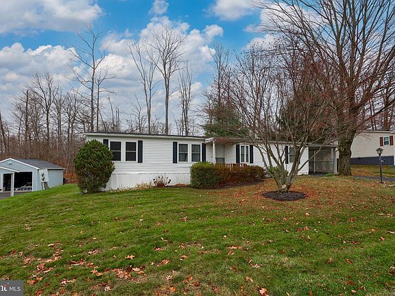 This home is located in the desirable Gretna Springs 55+ Community on a quiet cul-de-sac. With 3 bedrooms, 2 full bathrooms, and over 1,500 sq ft of living space this home features an open floor from the living room into the kitchen and dining area that continues into a secondary living room and has a sliding door that leads onto a large deck overlooking the backyard. The primary bedroom has an attached full bathroom and a walk-in closet, there are 2 additional bedrooms and another full bathroom. There is an attached carport and shed with electric running to it for additional storage. This home is centrally located off Route 72 just minutes from the PA Turnpike and Route 322. Lot rent includes water, sewer, trash, and access to the community center. Don't miss this opportunity, schedule your showing today!