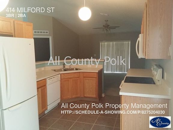 SCHEDULE A SHOWING ONLINE AT: showmojo.com/lh/8275204030 This 3 bedroom 2 bathroom single family home is located in Davenport off of US27 in the Pines West subdivision. Single-level, Contemporary Block Stucco Detached All on one level Composite shingle Master bedroom split Full master bath Formal dining area, Eat-in kitchen Oven / range, Refrigerator, Ice maker in fridge, Built in dishwasher, Microwave, Sink disposal, Contemporary style Washer, Electric dryer Family room, Screened room / lanai / sunroom, Formal living room / parlor Carpet, Vinyl tile Plastic blinds, Screens Vaulted ceilings, Alarm system, Cable / satellite TV ready, High-speed internet ready Private yard / courtyard, Covered patio / deck Unfurnished 2 car garage Electric heat Central air Ceiling fans Public electric Public water, Water softener, Electric hot water Public sewer Possible, with approval No additional items No smoking permitted, No waterbeds permitted 12 months