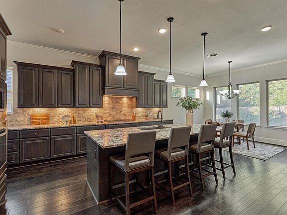 Gorgeous Custom home-5 bedrooms, 4.5 baths, 3 car oversized tandem garage, beautiful pool, covered patio, outdoor kitchen, large lot no back neighbors! Primary Bedroom & Guest Suite first floor. Dream kitchen-abundance of cabinets w/counter-tops, large island w/sink, walk-in pantry & gas cooktop. Living room a great place for family or entertaining w/wall of windows overlooking pool, floor to celling stone fire place. Home features extra large laundry room, home office, oversized gameroom & media room. New roof 2025- CertainTeed Landmark shingles, hand nailed w/amazing warranty, 2-16 seer HVAC systems, HVAC & pool professionally maintained, 2-Gas tankless water heaters. Amenities include recreation center w/pool, clubhouse, five miles of wooded greenbelt trails, Central Park- which includes a natural creek, footbridges, a nature themed playground, picnic areas, & trails. Lake Woodtrace, a real spring-fed lake that houses a canoe/kayak launch & a fishing dock