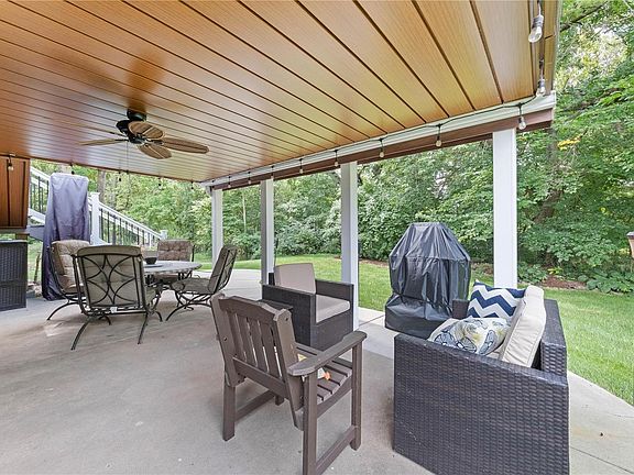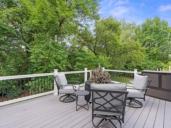 Soaring vaults and natural sunlight will lift your spirits as you enter this lovely updated 1 ½ story home on a private lot backing to trees. It’s convenient and close to everything but offers a parklike setting in back. The new composite deck and lower covered patio look over lush trees and a bubbling brook. Updates include roof with leaf guard, hvac, H2O heater, composite deck w under decking, front door and LL slider and insulated garage door. The main floor primary suite has a spacious walk in closet and beautiful bath, kitchen has granite tops and stainless appliances and the great room with hard surface floors and FP is fabulous! Upstairs are 2 bedrooms and full bath. The lower walkout level offers a family room/rec room, full bath, cedar closet and storage. Move right in and enjoy! Rear of lot is in 100 yr flood plain but home is not and sellers are not required to have flood insurance.