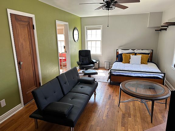 Furnished studio apartment. No shared space. Separate, eat-in kitchen with full sized appliances. Tons of natural light with southern and western facing windows. Very well maintained apartment in the heart of the Northside. Just a five minute walk to restaurants, iconic bars, grocery, and retail shops. This apartment is available for short term rental as well as long term. Rent includes heat, water, central AC, laundry (machines in basement shared with other tenant) and cable internet. 414 N Gilbert is three residential units all of which are on one HVAC system. Therefore there is a strict no smoking and no pets policy. This apartment is available furnished as appears in the photos. Lease duration is flexible starting at one month. Longer leases are considered as well.