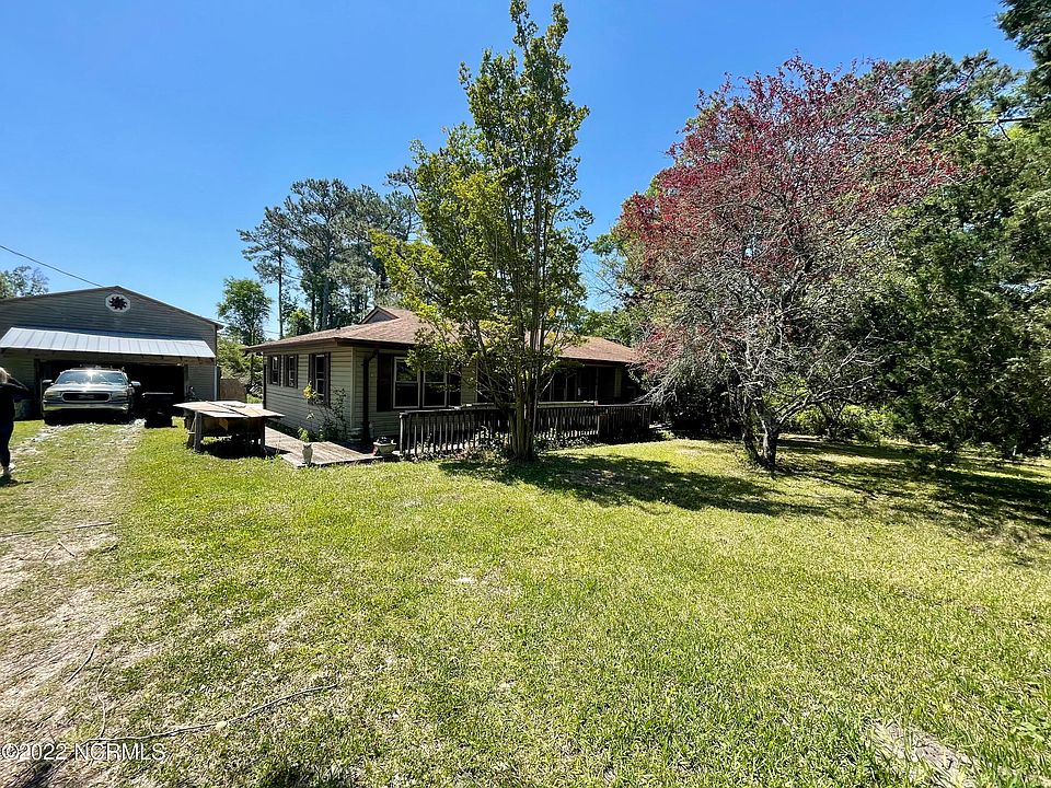 Unique ranch style property in quiet Holly Ridge, 4 bedrooms 1.5 bathrooms situated on an oversized lot. All 4 bedrooms, bathrooms and kitchen/living area on one level, no stairs except to the basement. Home has 2300+ sq ft with a basement and a large deck that wraps all the way around the home! This house needs TLC and updating. There is a massive barn workshop out back that is a handyman/tinkerer's dream spot. Tons of storage and a second level for overflow in the garage. The bones of the home are good, renovate it and make it your own!