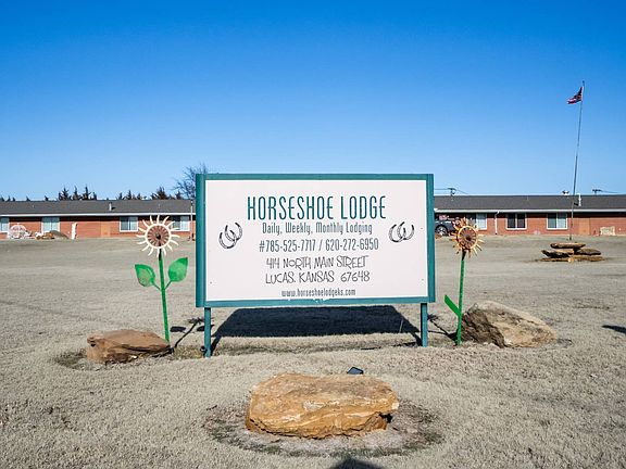 Welcome to Horseshoe Lodge, your premier retreat located in the heart of Lucas, Kansas! This magnificent lodge boasts 21 unique and individualized spacious bedrooms and 25 bathrooms, providing the perfect blend of comfort and convenience for all guests. The lodge offers regular rooms along with small and large-sized suites. A tremendous amount of work has been completed over the years to make this a turnkey opportunity. This business is ready to transfer to its new owner and will even include most of the furniture and decor you see in the listing photos. Designed to cater to hunters, anglers, and other travelers from across the country, Horseshoe Lodge is the ultimate haven for those seeking a rustic escape. It is an unparalleled experience for avid outdoors enthusiasts or for one who is simply seeking a peaceful getaway. Outside of the hunting and fishing opportunities, Lucas, the "Grassroots Art Capital of Kansas" offers rich cultural and natural wonders, with nearby attractions such as the iconic Garden of Eden and Scenic Wilson Lake, the "Cleanest Lake in Kansas". As you enter Lucas, you can also notice the World's Largest Souvenir Travel Plate. This area has a unique charm, where art, history, and the great outdoors converge. After a day of adventure, guests return to Horseshoe Lodge and unwind in the welcoming common area, where camaraderie flourishes among fellow guests. Share tales of the day's exploits, relax, or partake in a game of pool.