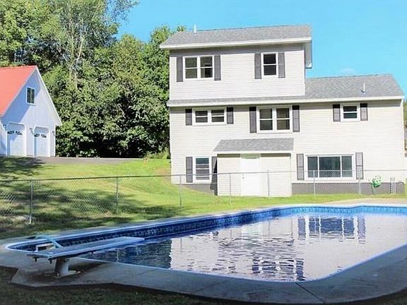 This beautiful 4 bedroom, 3 bath Contemporary home sits on nearly 6 acres of land with nearly everything new! New paved driveway, inground pool, hot tub and large 3+car garage round off some of the recent updates. Interior updates include new hardwood flooring, granite counter tops, stainless steel appliances, heat pumps and finished daylight basement with wet bar that could potentially be used as an in-law apartment.