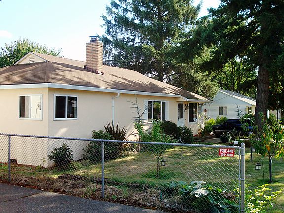 Charming Hazelwood Neighborhood home with updated kitchen. Three bedrooms, one bath with tiled tub/shower surround. Cozy living with original brick fireplace hearth & insert. Fenced backyard, covered patio, and oversized one car detached garage with laundry hookup and storage. Long driveway for parking as well. Great location near Glendoveer Golf Course and trails.Home getting a New Roof for peace of mind!