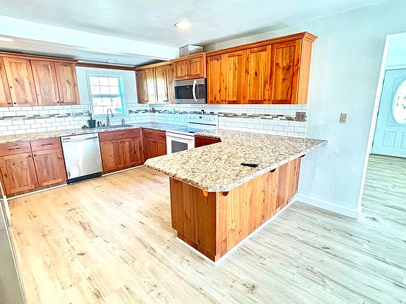 Welcome home! Tastefully updated cottage style house on a large open lot. Quite a handful of improvements for your fresh start! Sewer line replaced this March. New vinyl flooring throughout. New paint, new back porch. Roof replaced in 2022. Water heater replaced in 2021. Bathroom fully remodeled with walk-in shower, separate jetted tub, tiled floors and marble counter top. Kitchen appliances all upgraded in the last 5 years. Gorgeous cherry wood cabinets and ample counter space. Come make this home yours!