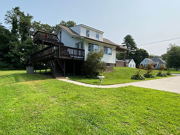 Beautifully and thoroughly updated bungalow in a very convenient location. Newer roof, siding, windows, HVAC, bathrooms, kitchen, driveway. The first floor offers two living rooms, dining room, kitchen, sun room and first floor bedroom and bath. The front living room features a fireplace. A picture window there and a bay window in the second living room bring lots of light into the home. The high ceilings make the space feel even larger. Both the sunroom and the dining room open to the large back deck. The kitchen features new cabinetry, granite counters and stainless steel appliances. Upstairs are two bedrooms, beautifully tiled bathroom and a bonus space at the top of the stairs that could serve many different purposes. This room opens to the upper level deck. The full basement provides plenty of room for storage, and is a great place to see all of the updated systems. The large lot features an expanse of lawn surrounded by woods, giving the backyard a nice private feel.