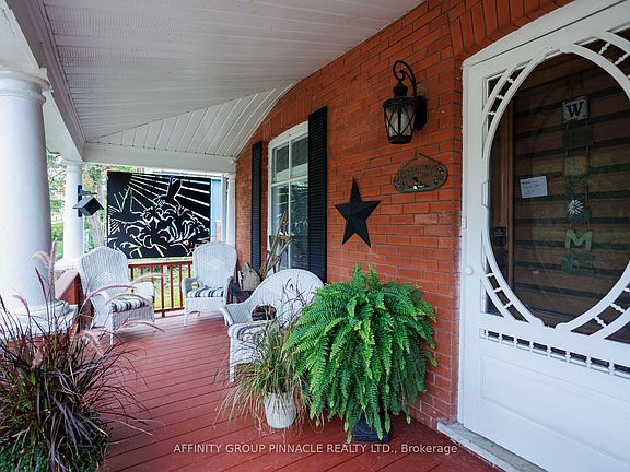 This inviting century home offers three bedrooms and one and a half bathrooms, including a convenient main floor bedroom and a primary suite equipped with a private two-piece ensuite. The property features a durable metal roof and classic brick construction, ensuring lasting curb appeal and easy maintenance. Set on an expansive double L-Shaped Lot with two driveways accessing two roads, the home provides ample space for outdoor activities, gardening, or future expansion. During the warmer months, enjoy the above-ground pool and private deck, perfect for entertaining or relaxing in the sun. Inside, you'll find a large, open-concept kitchen designed for family gatherings and culinary creativity. The spacious main floor includes both a living room and a family room, offering plenty of room for relaxation and hosting guests. This remarkable property blends timeless character with modern comforts, presenting a rare opportunity to own a home with generous living space and exceptional outdoor amenities. Walking distance to town.