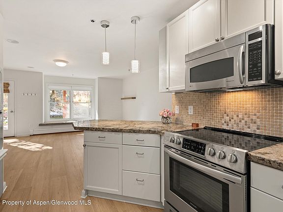 Brand new paint and flooring throughout, stackable washer/dryer, stone counters, stainless appliances, and an updated bathroom make this the perfect place to settle into the Aspen lifestyle. The extended back patio which has room for outdoor dinner parties is what makes this unit unique. The unit comes with one assigned parking space, the complex has an outdoor pool and hot tub that are open all summer, and the location is a short drive, bike ride, or bus ride to town. Sick of paying rent and ready to own your own slice of heaven, look no further!