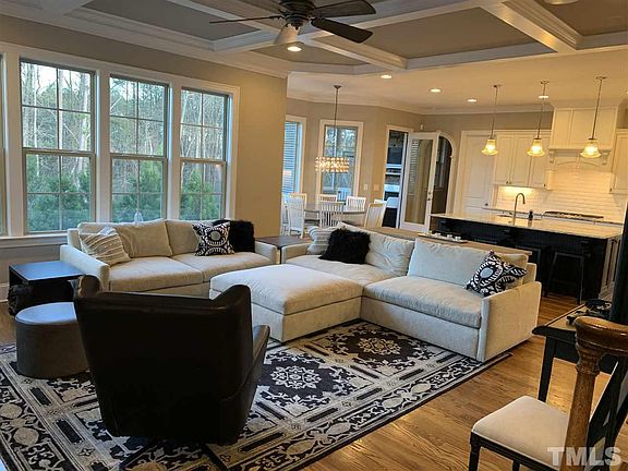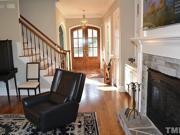 Custom-designed by Gray Line. 5 bdrm. 5.2 bath NW-facing in desirable Cameron Pond. Backs to woods. See flr plan in pics. Lg. open living/kitchen space. 1st flr. in-law bdrm. with en-suite bth. 10ft 1st flr ceilings, with extensive trim finishes. 1st flr. all hdwds. 2nd and 3rd flr bonus w/ lots of options for home office, entertaining etc. Dual zone Surround Sound. All rooms access to bth. Epoxy flr. garage. Energy star 3.0. Next to future town of Cary Park, far from 540. Connected to new Cary grnwy.