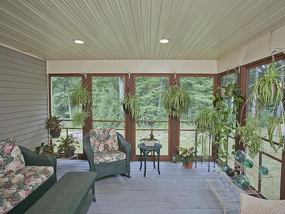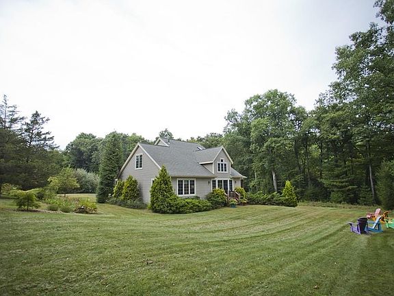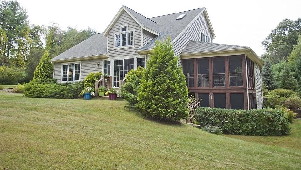 Well maintained, compact home in a secluded garden setting offers a variety of rooms including a separate lower level apartment. The gracious front hall leads to an open concept--kitchen, dining, living area. Adjacent to this are a den, two bedrooms with private baths and an elevated screen porch overlooking the gardens. Sliding glass doors open out to manicured grounds featuring perennial gardens and specimen trees. A dramatic, custom-built, spiral staircase leads to a private master bedroom en suite with an additional room for multiple uses. The basement offers spacious dry storage. The one bedroom apartment has its own entrance and screen porch. It would be suitable for rental, guests or a home based business. There is enormous storage space above the garage. The location of this house makes for quick access by Rt 47 and Rt 116 to all neighboring towns. Move-in condition and highly motivated seller.