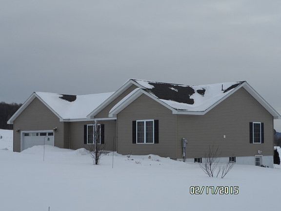 RARE OFFERING! ALMOST-NEW RANCH HOME ON 5+ ACRES WITH PANORAMIC VIEWS. Constructed in 2008, this spacious ranch home with attached 2 car garage has it all with high quality finishes from top to bottom. Well-designed home flows nicely with large, open kitchen & living areas with sliding doors to a deck with panoramic views. Walk-out basement with poured concrete walls can be finished for additional 1782 SF of living space. Newly paved driveway, new shed, new oil tank & lines. The 5.03 acres is nicely landscaped, with walkway, fire pit, recent plantings of 130 trees and several fruit & flowering shrubs. You will fall in love with this home.
