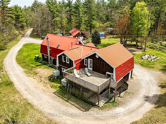 Hidden Country Retreat 21.25 Acres of Beauty and Privacy. Tucked away from the world and surrounded by natures quiet embrace, this exceptional 21.25-acre property feels like your own private sanctuary. In winter, the landscape transforms into a breathtaking, peaceful, pristine, and picture-perfect. Offering a large living space (much larger than the MPAC report), this unique 6-bedroom home blends the charm of rural living with unmatched privacy. Two kitchens and separate entrances create flexible living options for extended family or guests, while the home's many spacious rooms invite you to lose yourself in its serene corners. Two wood stoves add warmth and rustic character year-round. Recent updates include a new hot water tank, pressure tank, and well pump (2022). A dual-fuel gas/propane generator keeps the home powered when needed. The grounds offer endless possibilities, two charming cabins with wood stoves, a trailer with hydro and deck, two vegetable gardens. One with a greenhouse, the other with berry bushes, and fruit trees. Outdoor living is equally inviting with a brand new above-ground pool, cozy fire pit, and a playground for children. For those with farming or hobby interests, the barn includes a tack room, water, and electricity, plus a paddock with livestock fencing. Three chicken coops (one previously for rabbits), a large outbuilding with two garage doors, one side with a wood-burning stove, offer ample storage or workshop space. Under the back deck, a contained dog kennel with multiple runs awaits. Whether your dream is homesteading or simply living surrounded by nature, this property delivers unmatched space, beauty, and potential. All it needs is your imagination!!! For safety, use of play structures/trampolines is not permitted. Road maintained year-round (Township of Alnwick/Haldimand).