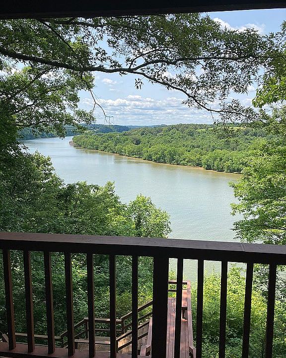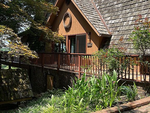 Beautiful A frame cedar shake home with separate garage and separate carport that is cedar shake. Beautiful serpentine brick drive, flagstone walk and patio. View from the deck is spectacular! Home has tongue and groove vaulted ceilings. Windows from floor to ceiling opens the home to the view. Wood burning stove. Dock with lift built in 2005 with new metal roof.