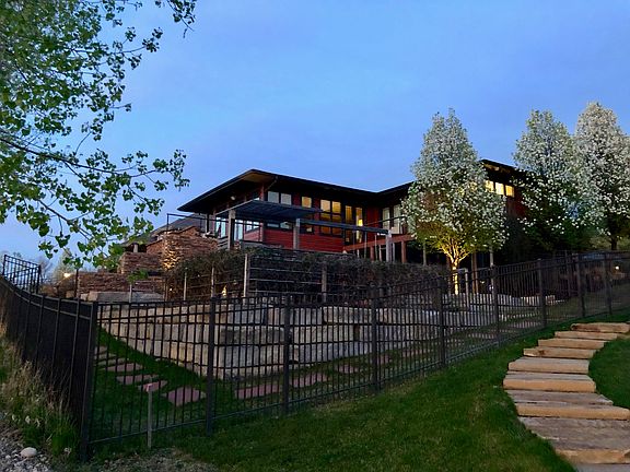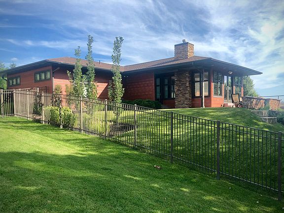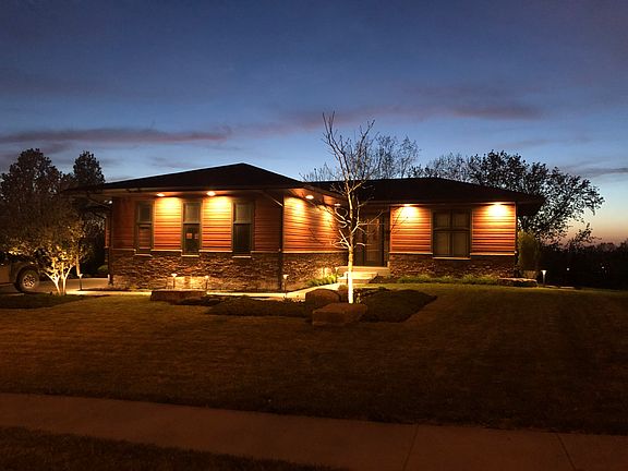 5 bedroom, 3 bath ranch walkout, modern/contemporary prairie style home - architect designed - built in 2008. Located on south cliff of Iron Horse lake - backyard with six foot fence ends at a 90 foot drop-off into the lake; which makes for incredible views of the lake, the golf course, and the sunset from the living room and patio. 3900 square foot finished, with 2000 square feet on the main floor, and 1900 finished in the basement, with about a 100 square foot unfinished storage room. Has five bedrooms - three upstairs and two downstairs, with three full bathrooms. Main room upstairs is a big open room - with kitchen, dining room, and living room all one big open space with 180 degree windows looking out onto the lake. Living room has a gas fireplace. Has a large, carpeted playroom downstairs with a chalkboard wall, and a large downstairs family room/media room with a wireless HD Epson projector, 80 inch screen and surround sound. 2 car garage with a workbench and cabinets for storage. Garage is deep enough to park a golf cart sideways in the front of the garage. Screened in porch on lower level. Extensive landscaping with all around accent lighting - backyard is level with an architect designed cedar play structure and sandbox. Retaining walls in backyard are large, real limestone rocks. Backyard also has a waist high garden planting area, and steel planting boxes. Planters have drip line installed for easy watering of plants. Gas fire pit on patio outside of upstairs living room, overlooking the lake, faces west for awesome sunset viewing. House is prime location to view the Iron Horse annual 4th of July fireworks extravaganza - the fireworks are shot up right in front of the back patio. All the Iron Horse golf course amenities. Built in pet house that is accessible from the garage for cleaning. No pets have lived in home since 2010. Modern detailing in the house - cable railing on the stairs, clean lines in cabinets, recessed can lighting, halogen lighting, modern pendant lighting. Brazillian cherry wood floors throughout house, carpet in bedrooms and playrooms. Quartz kitchen countertops. Deck accessible from master bedroom and kitchen with gas line for grill. New roof in 2016, as well as new gutters, windows and doors on the west and north side of the home. Access to marina for boat parking - and access to Iron Horse lake for swimming and fishing (very deep, clean, spring fed lake). Gas stove, water heater, and fireplace. Water softener since home was new.