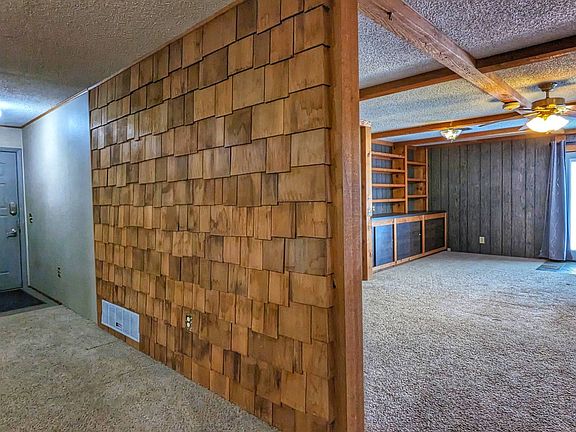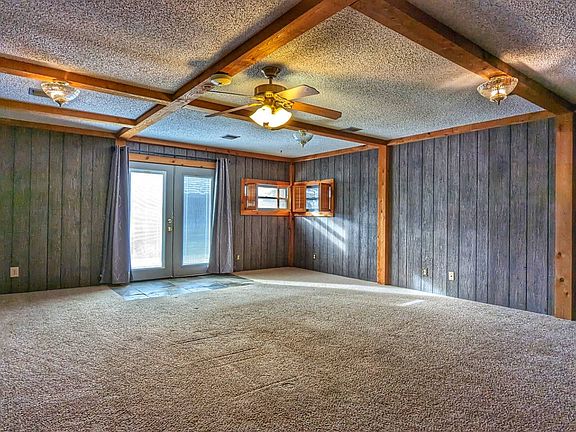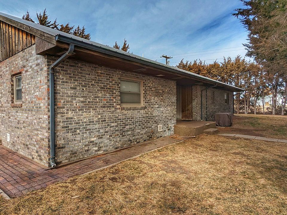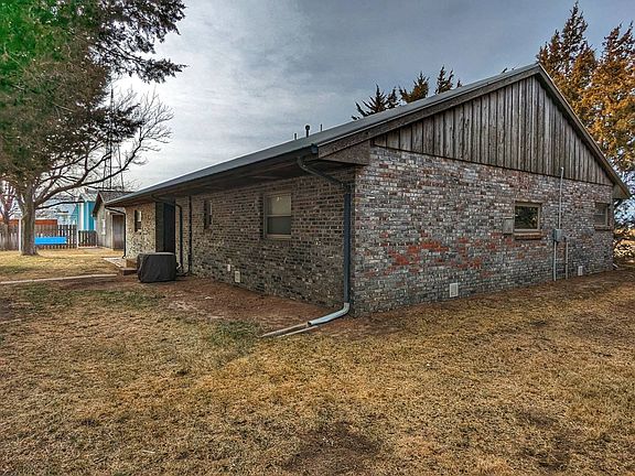 Completely secluded and private, this expansive brick ranch style home is surrounded by mature pines and nestled away in its own glorious corner of town. Located in Utica, Kansas just a block off K4 Highway, the home is the perfect hub for living in the center of a four county area! Hidden from view, the corner lot has access from three sides. The East-facing residence is fully updated and remodeled with oversize rooms, one level living and easy maintenance--inside and out. The family room with country wood detailing, wood stove and atrium doors walks out to a sunny Southern-facing wood deck. The pass through brick feature wall divides the family room space from the living and dining areas making for one free flowing gathering space. The home boasts a convenient split floor plan, with a large primary bedroom and en suite bath off the family room. On the other end, two bedrooms, one with washer and dryer, make great bedrooms, offices or crafting rooms. An over sized garage is divided into two areas, with an awesome workshop/lounge in one area, complete with heat! A home that has to be experienced on a lot that seals the deal, this NEW listing won't last long!