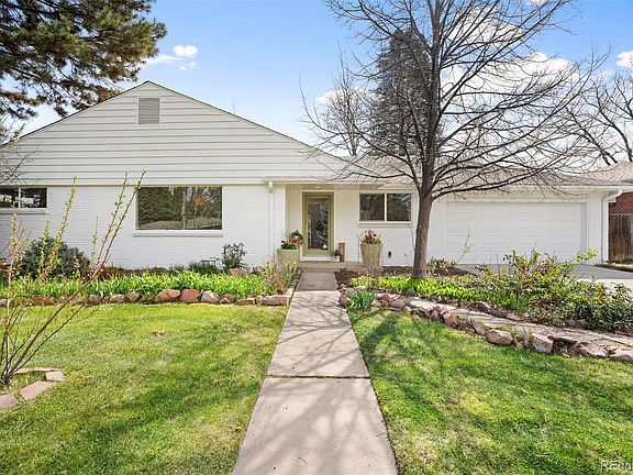 Gorgeous streams of natural light illuminate this Virginia Vale home. Poised on a 10,400-square-foot lot, a charming white brick exterior is surrounded by verdant landscaping. Enter into a ranch-style layout flowing w/ beautiful wood flooring and fresh white wall color. A stylish kitchen boasts sleek cabinetry and a tiled backsplash. Two sets of glass French doors in the open living and dining areas open to a large, terracotta concrete patio in a lush backyard oasis. Wrapped in mature landscaping, this enchanting outdoor space features a separate yard for pets, raised garden beds and a variety of trees including cherry, Japanese plum and ash. Retreat to the primary suite flaunting a custom walk-in closet and a 5-piece bath w/ a jetted tub and steam shower w/ a rainfall showerhead. Three additional bedrooms are complemented by two baths. Upgrades include a newer on-demand water heater. A coveted location offers proximity to the Cherry Creek Trail and Crestmoor Park.