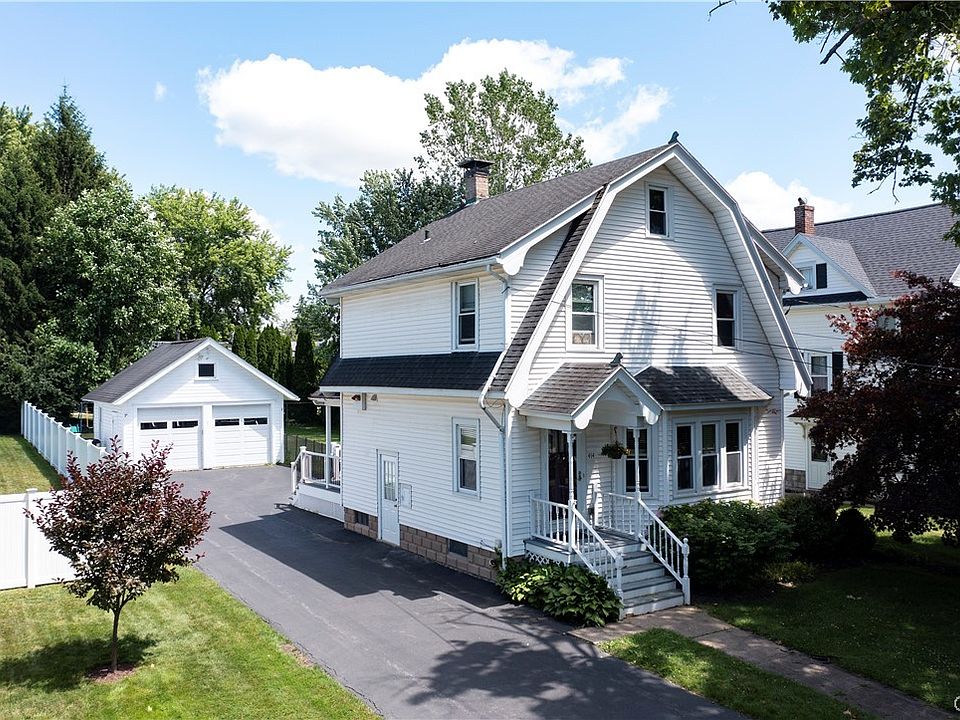 Charming three bedroom Colonial located on a nice quiet neighborhood street. This home boasts charm and elegance in all rooms. The galley kitchen has nice updates, half bath, beautiful formal dining room, living room with nice glass French doors and nice built-in shelves, hardwoods throughout. The second level has three ample sized bedrooms with nice sized closets, fully renovated bath with tiled shower and vanity. The deck off the dining room offers great entertaining space overlooking the private fenced in back yard. The home also offers a detached two car garage with great storage space.
