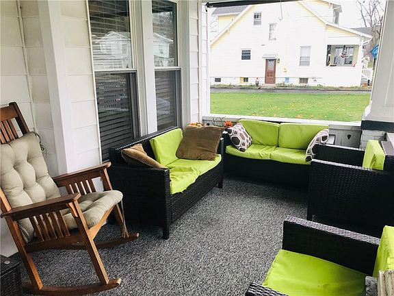 Lovely 3 bedroom, 2 full bath home on a fully fenced double lot with 2 car detached garage in the village of North Hornell. Stunning woodwork, updated flooring, and vinyl windows throughout. Large living room with decorative fireplace leads into formal dining room. Kitchen includes appliance package that is only 3 yrs old! Large family room with full bathroom, large storage closet, and doors leading to back deck complete the first floor. Upstairs are three bedrooms and a remodeled full bath with tile floor and granite topped vanity. Bonus rec room in the partially finished basement! Updated mechanics include forced air furnace that is 4 yrs old, tankless hot water heater that is 1 yr old and 150 amp circuit breaker panel. Big covered front porch is the perfect spot to relax or entertain. Fully fenced double lot has tons of room and features a detached 2 car garage with electric and storage/shop space.