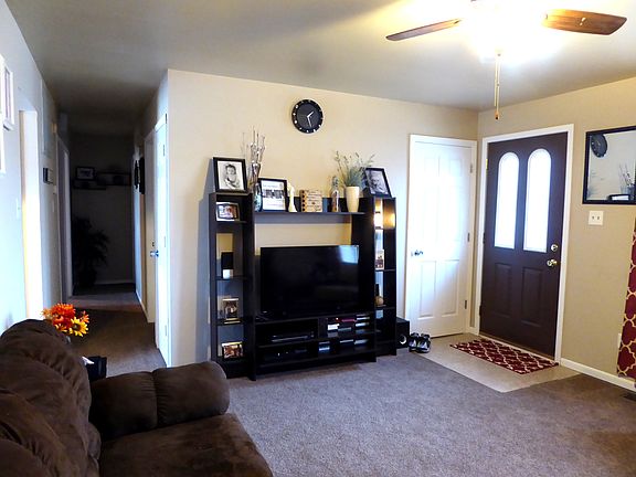 Adorable ranch with numerous updates is waiting for it's new owner. You feel right at home the minute you walk inside. Living room has red accent wall and newer carpet. Kitchen has newer counter tops, glass mosaic backsplash, and laminate vinyl flooring. Butcher block island was added. Extra lighting above and below the Cherry cabinets. Appliances include refrigerator, stove, dishwasher, washer & dryer. Utility room is right off kitchen but away from bedrooms. New interior doors and newer carpet in hallway and bedrooms. Whirlpool tub in bathroom. Huge 24 x 28 attached garage. Huge fenced yard with 10 x 8 storage shed. Roof is metal and is 6 years old. Windows and siding were replaced as well about 6 years ago. Seller will provide 13 month HWA Warranty. Located in Union Twp. School district. This home is priced to sell. Call for your chance to view.
