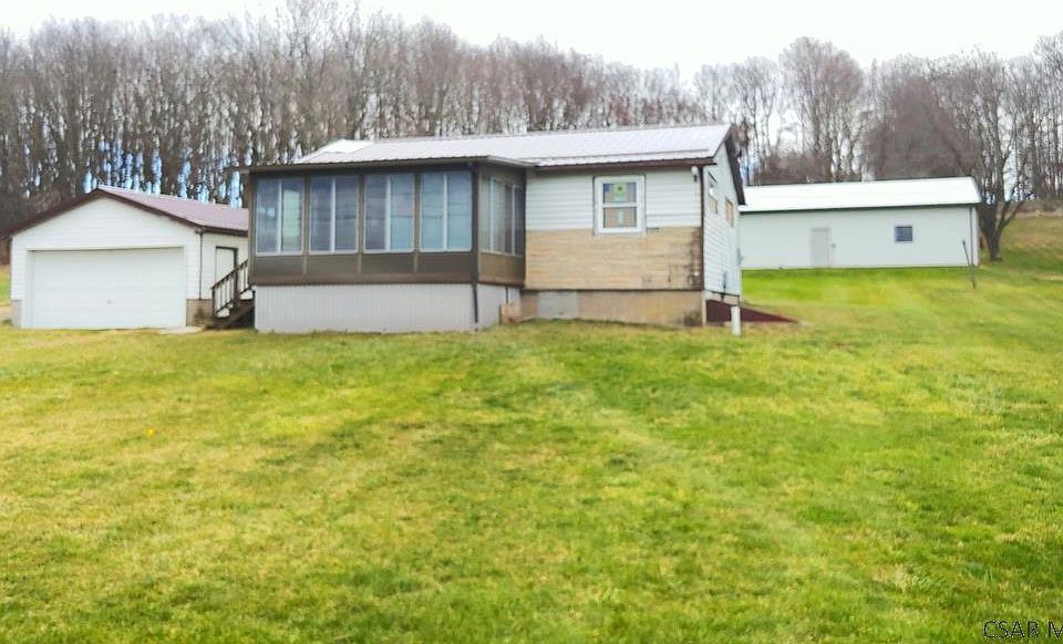 This Somerset Area School District unique property sits on 2 acres and is ready for you to finish and make it your own. Beautiful views of the Laurel Highlands. A post world war 2 large sycamore tree stands proudly near the road. that Newer metal roof. Some newer vinyl windows. Rooms are studded out and some original hard wood floors have been refinished.. Large 32 X 64 Pole building in rear of property with an oil furnace and electricity. There are some building materials that are negotiable.