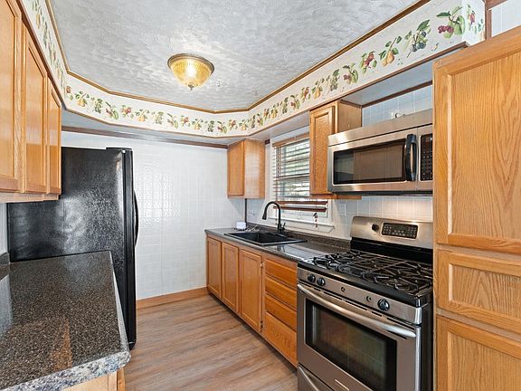 Ranch home with a partially finished basement located on a nice-sized lot. The main level has two bedrooms, a bathroom, the Great Room, and an Eat-in Kitchen. In the basement, there are the Rec Room, Laundry area, Utility area, and extra storage space. The backyard is fenced. The roof was new in 2020. The siding was replaced in 2021. The seller had new flooring installed in the kitchen and bathroom and replaced the tub, kitchen sink, and counter this year. This home is worth seeing!