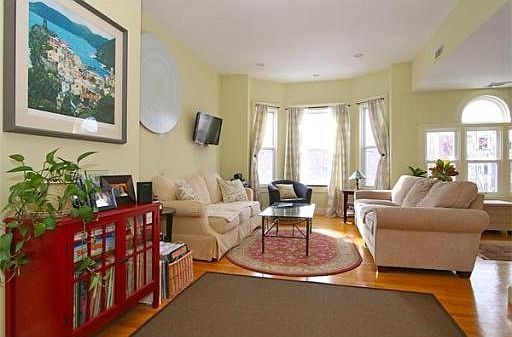 Stunning two bedroom, one bathroom penthouse home located in East Boston's. Views of Brophy Park and Webster Street brownstones from the open living/dining room featuring high ceilings, renovated kitchen and hardwood floors throughout. Wonderful closet space and large private storage space. Central Air-conditioning, in unit Washer/Dryer, pristine hardwood floors, elegant brick exposure in common areas. Only a ten minute walk from Maverick Station. Roof rights included