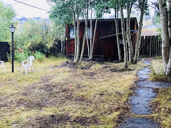 Welcome - we've been waiting for you! This home has 3 beds, 1 bath, and way more aspen trees than we felt like counting. Step inside to admire the built-in corner hutch and scalloped crown molding, then skip through the dining area with its hearty gas-log stove to find a bedroom behind a set of tall French doors. You don't want to miss the Great Ceiling of Pressed Tin in the updated kitchen, which also features a cute little nook of cabinets and shelves. Bathroom's right off to the left, also freshly updated, with clean white tile and turquoise paint aplenty on the walls. From there it's out into a backyard with a couple of sheds where you can start stockpiling coal for Christmas. New electric, new paint, new sewer line here. And would you get a load of that white picket fence in the front yard? Quit reading this description and give us a call today!