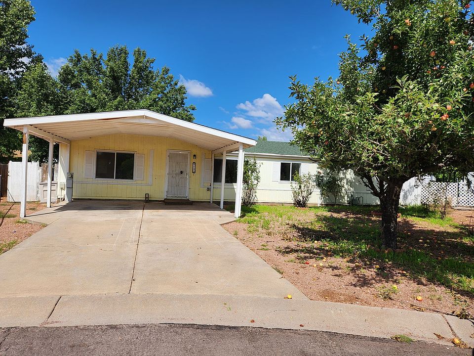 This lovely 3 bed + den / 2 bath home was just updated with new flooring, paint, ceiling fans + new central heat & AC. Property offers an open, split floor plan with both living room and family room, mud room just off the eat in kitchen, and an office/den. Home is located at the end of a quiet cul-de-sac, has large carport and 2 producing apple trees out front. In the fully fenced backyard, you'll find 2 sheds for tenant use and mature shade tree.