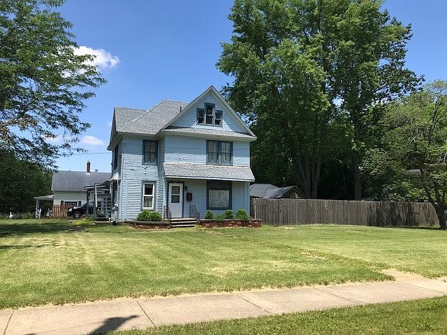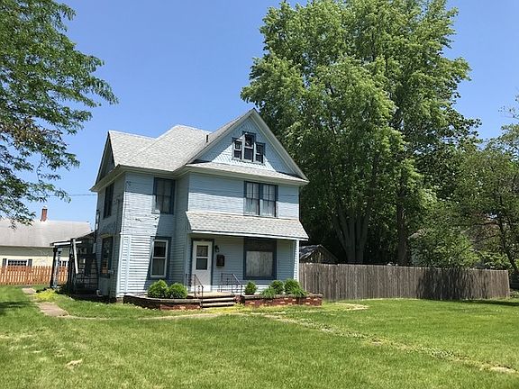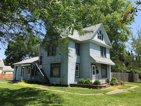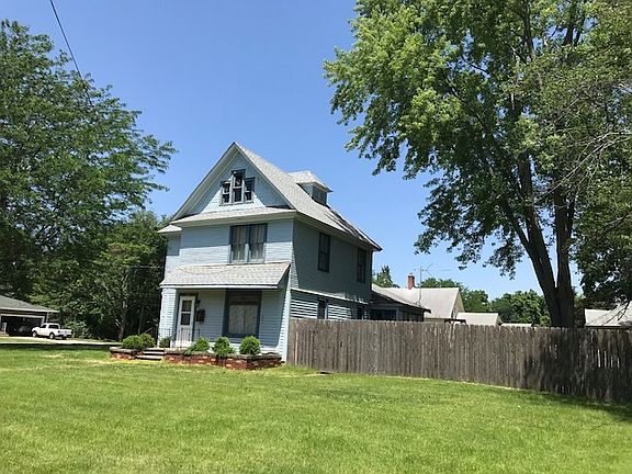 Victorian Lovers Dream Home, 1948 SQ FT with 4 bedrooms & 2 Full baths. Main floor master bedroom with oak hardwood flooring, full bath & laundry room. Foyer, Parlor, Family Room with pocket doors, separate Dining Room all with new laminated flooring & original wood trim accents. Most windows on main floor are newer except the stain glass windows. House roof 2 years new, 1.5 car detached garage with 3-4 years new roof & attached shed. Ready for AC, just needs outside unit. New water softener stays, never hooked up. Privacy Fencing with patio & deck for outside enjoyment. Large corner lot. Sold AS IS.