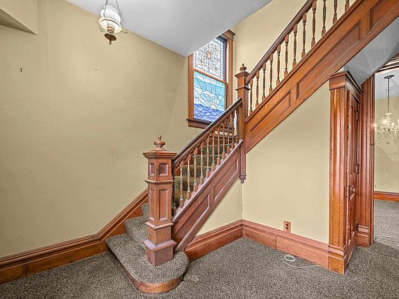 Welcome to this captivating 4-bed, 2-bath home, bursting with timeless character. From the moment you step inside, you'll be transported to another era, surrounded by original details like antique pocket doors, ornate decorative doorknobs, beautiful stained glass and other preserved period features. On the home’s main level, you will find a large living room with a wood burning fireplace, a formal dining room, a family/great room, and an eat-in kitchen with walk-in pantry. The home’s upper level offers sizable bedrooms and a second full bathroom with access to the attic for storage and more. Once converted into a duplex, a second kitchen was thoughtfully installed upstairs and still exists today in what is currently the 3rd bedroom. Though the home has since been restored to single-family use, the upper kitchen cabinets remain, offering an easy path to reconfigure the space back into two separate bedrooms. The generously sized 4th bedroom boasts a walk-in closet large enough to function as a potential 5th bedroom. With an egress window already in place, it's ready to adapt to your vision and lifestyle. This rare property is being sold as-is, offering a remarkable opportunity for those looking to restore or reimagine a piece of architectural history. Whether you're an old-home lover or a creative renovator, this home is ready to write its next chapter with you.