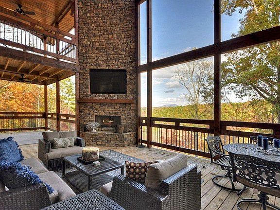 You can have it all with this stunning custom built Riverfront masterpiece! Rare opportunity to have both jaw-dropping long-range mountain and Toccoa river views, complete with private river access!! Custom built mountain elegance awaits in this 5-bedroom entertainers dream -upscale finishes throughout, 4 massive fireplaces, 2 wet bars, full surround sound audio in each room, grand living areas with soaring floor to ceiling windows to take in the views from each level! Designer touches mixed with rustic elegance, comfortable outdoor spaces and multi-level party porches!