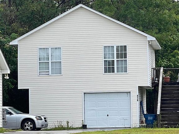 Great investment opportunity to purchase home and garage apartment. Home (414) in front is 3 bedrooms, 2 baths with an open floor plan, vaulted ceiling and eat-in kitchen. Rents for $1400 per month. Garage apartment (416) in back is 1 bedroom. Rents for $1000 per month. Garage apartment has full use of the 1 car garage and 2nd bay on lower level. Located right off Holly Tree Road at College Road. Great location and close to so much. Highly desirable schools. Holly Tree, Roland Grise and Hoggard.