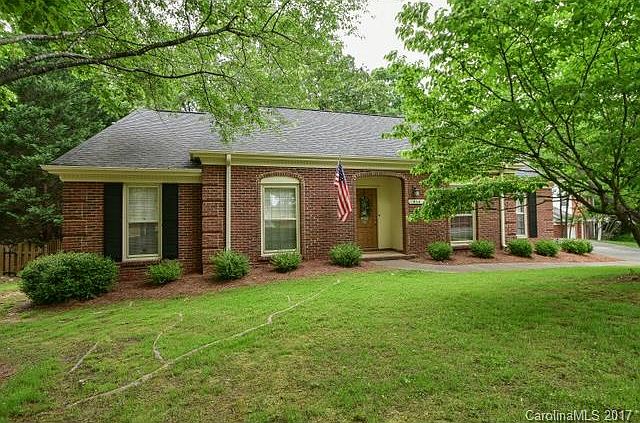 CUTE, FULL BRICK RANCH in MATTHEWS! Popular schools, GREAT LOCATION & established/quiet community. Beautiful WOOD laminate floors throughout, BRIGHT/OPEN family rm, Kitchen w/white cabinets, stylish tile backsplash, nice size island, large pantry, & separate laundry rm. BONUS rm conveniently adjacent to kitchen- perfect for an office, playrm, or formal dining. Peaceful backyard w/shade trees, private patio, LARGE shed, & utility closet. Neutral paint colors, updated lighting. WON'T LAST LONG!