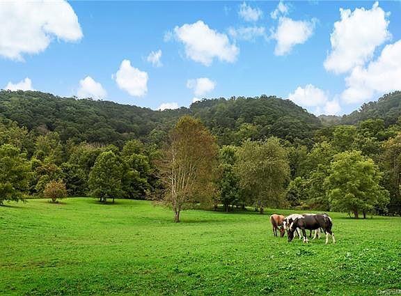 Here is your chance to own 44 acres of unrestricted land in Leicester! The charming farmhouse sits on the front of the property, where it watches over the two small creeks running along each side and down into the valley as if it is frozen in history. Sit on the front porch under the weeping willow tree and enjoy the sounds of the water flowing over the rocks and watch the wildlife in this amazing valley located in Buncombe Co. Walk inside the front door and you are welcomed by the wood burning fireplace located in the living room with white washed wormy chestnut walls. There are plenty of fenced in areas for your animals and several run in sheds. The barn is currently being used for goats and hay storage. Making this property a ready made farm that is currently in full use. Take a walk up to the back pasture and the view from up top is AMAZING! Build your dream home up top or live in the cozy farmhouse below. Don't miss out on this opportunity! Call for a showing today.