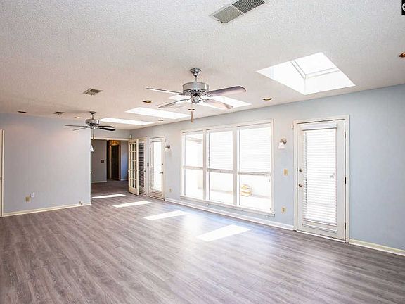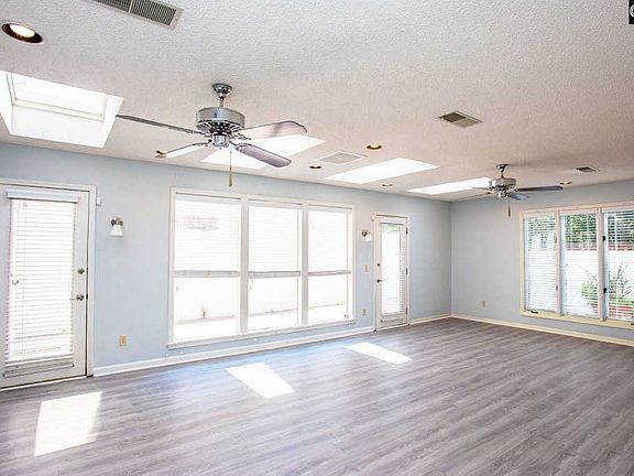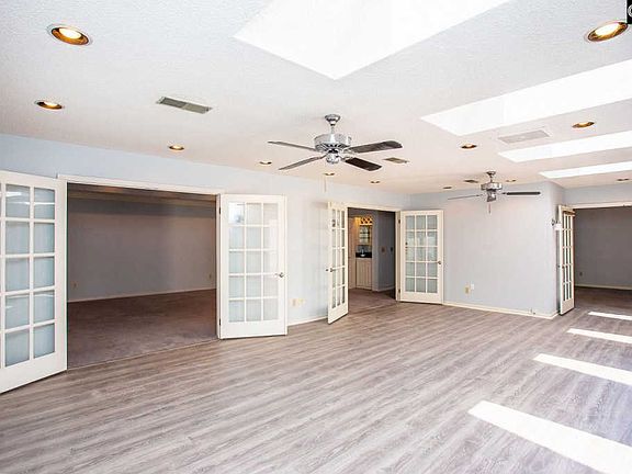 Watch the virtual tour! HOT TUB REMOVED! Low Maintenance Resort-Feel Living! This one of a kind home welcomes you with dentil crown molding, tile flooring, and lots of natural light. As you enter, to the left is the guest bedroom and bathroom. The tiled kitchen is on your right which features a skylight over the dining area, ceiling-height custom white cabinets that compliment the dentil molding, new stainless steel stove, and a trash compacter. The spacious tray ceiling living room with recess lighting, a wet bar, wood burning fireplace (w/the gas line already present), and built-ins opens to the resort room with 2 sets of french doors. The oversized resort room features an indoor home sauna, 4 skylights with a view of the private courtyard. Making the perfect place to appreciate a cup of coffee in the mornings or to grab a glass of wine in the evenings from the wet bar. This massive flex room with new luxury laminate flooring can be used as you wish, sun room, exercise room, craft room, or third bedroom. Enter the master suite from the hallway or resort room through another set of french doors. The master features a large walk-in closet, two additional his and her closets, and a wardrobe closet. Talk about storage! Additional features include a reverse osmosis system, whole home dehumidifier system, alarm system, and termite bond. Convenient to interstates, Downtown, shopping, and restaurants! Previously rented for $1150/month making it a great investment property!
