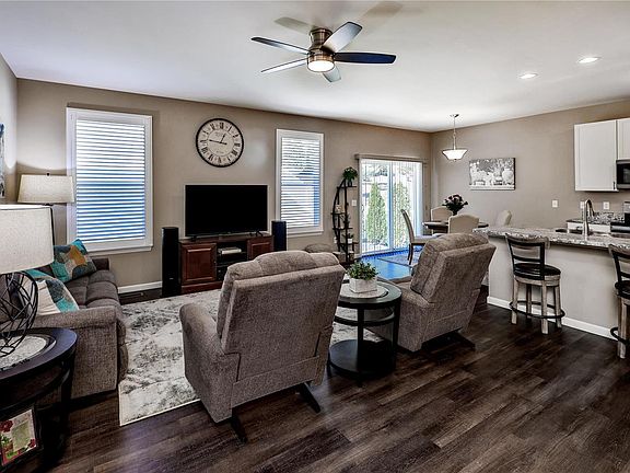The One With…All the Bells and Whistles. Lovely bright open concept ranch home boasting an elegant brick elevation, soaring 9ft main floor ceilings, gorgeous engineered hardwood, main floor family room expands to your dream kitchen hosting 42” cabinets, designated pantry and convenient access to attached 2 car garage. Main floor owners suite offers a private en-suite bath and walk-in closet. Additional bedroom will make a great office or guest bedroom with expanded guest bath. Main floor laundry is a bonus with added cabinetry. Lower level offers room for expansion (rough-in bath & egress window.) This lovingly cared home is squeaky clean and move-in ready. Recent updates: Whirlpool kitchen appliances, counter top, deep sink, kitchen faucet, adult height toilets, elegant front door, storm door, plush carpeting (bedrooms/stairs), blinds, some lighting fixtures and ceiling fans, water softener, humidifier, fire resistant door to garage, master shower doors, shower head and so much more.