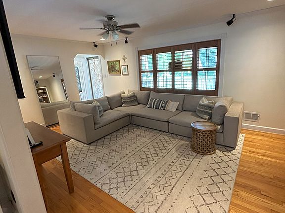 10 minutes to downtown! Beautiful 3 bedroom 2 bath ranch home in a quiet neighborhood with gourmet kitchen, luxurious bathrooms, stamped concrete patio, porch & ADA accessible ramps. Interior includes hardwood floors, crown molding, plantation shutters, custom tiled bathrooms. Additional features: surround sound in living and dining rooms, theater room, sun room with wet bar, natural gas fireplace, natural gas outdoor kitchen w/ Weber rotisserie grill w/ smoker & side burners, natural gas fire pit, outdoor shower with hot and cold water, heated/finished 2 car garage. No propane tanks needed! Neighborhood park and pond two blocks down. Utilities not included. Key Features: 3 bedrooms with closet space and ceiling fans 2 bathrooms, including a master suite with a walk-in closet, large jacuzzi tub and tiled walk-in shower with 6 shower heads Kitchen with stainless steel appliances double oven and wall oven, and beautiful granite countertops Beautiful sunroom with wet bar and beverage refrigerator Large private fenced-in front and backyard with a large stamped concrete patio perfect for outdoor entertaining. Built in concrete gas firepit. Built-in outdoor kitchen Outdoor shower 2-car finished garage with gas heat Carport RV power hookup BONUS SPACE - Theater room with stadium seating and projector with surround sound Location Highlights: 10 minutes to downtown Raleigh 10 minutes to White Oak Crossing Fast and easy access to I-40, and the brand new 540 Close to shopping, dining and schools For any questions or additional information before applying, feel free to reach out. Owner is responsible for all utilities and normal maintenance. I can provide pest control spray quarterly. Internet, water, electricity, and gas are not included. No HOA