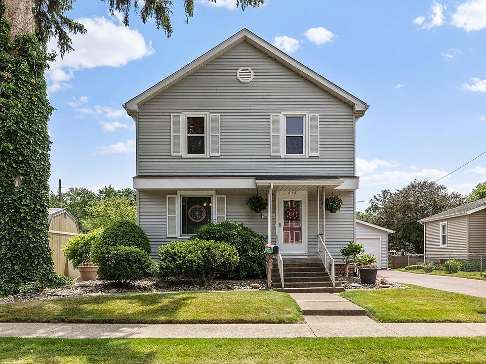 Nestled in the heart of LaPorte, this charming 3-bedroom, 1-bathroom home has historic charm. From the moment you step through the front door, you'll be captivated by the original wood frames, doors, and floors that exude timeless elegance and character. The main floor boasts a spacious living room that invites you to relax and unwind, a formal dining room, and a generously-sized kitchen that provides ample space for culinary adventures. Ascending to the second floor, you'll find three cozy bedrooms. The home's charm continues outside with a beautifully landscaped backyard, complete with a flourishing garden that promises a vibrant array of colors. The back porch, adorned with a charming awning, provides the perfect spot to enjoy your morning coffee or an evening breeze. Practicality meets convenience with a full unfinished basement, offering abundant storage space and laundry hookups. The stamped asphalt driveway leads to a 1-car detached garage, ensuring plenty of parking. This delightful home is a true gem in LaPorte!