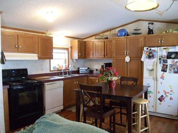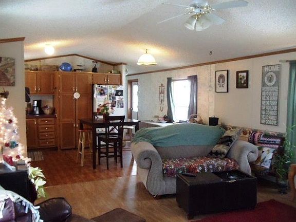 Do you want your own little acreage nestled in the woods yet near town & hard surface road? This 3 bed, 2 bath Mfd. home could be perfect you. Open concept living area, master bedroom with bath, utility room with washer & dryer included. Newer laminate flooring in living room and new kitchen stove. Wooden play set and storage shed stay. Seller has purchase a Home Warranty for the first year for the Buyer! This could be the house for you or even a place to build your dream house in the future surrounded by 2 acres of nature!