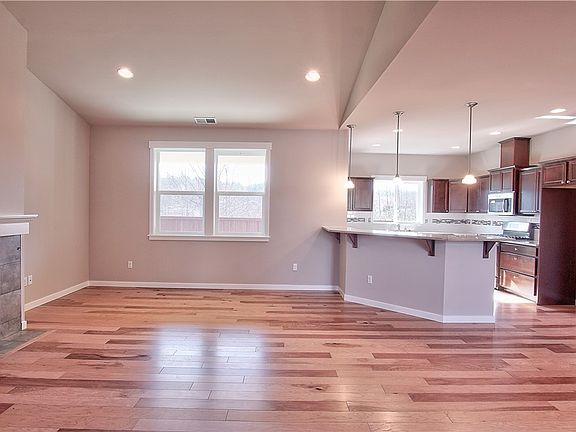 Brand new rambler plan in Summersun Estates. Open floor plan has great room w/gas fireplace. Formal dining room & kitchen w/peninsula. SS appliances w/gas range/micro hood and slab granite countertops. Large walk in pantry. Covered patio. Split plan with master bedroom/ensuite on one side of the house and two bedrooms/bath on the other side. Heat pump for AC/heat and efficient gas furnace. Backyard borders walking trail with no house behind it. Landscaped and fenced backyard. Completed home.
