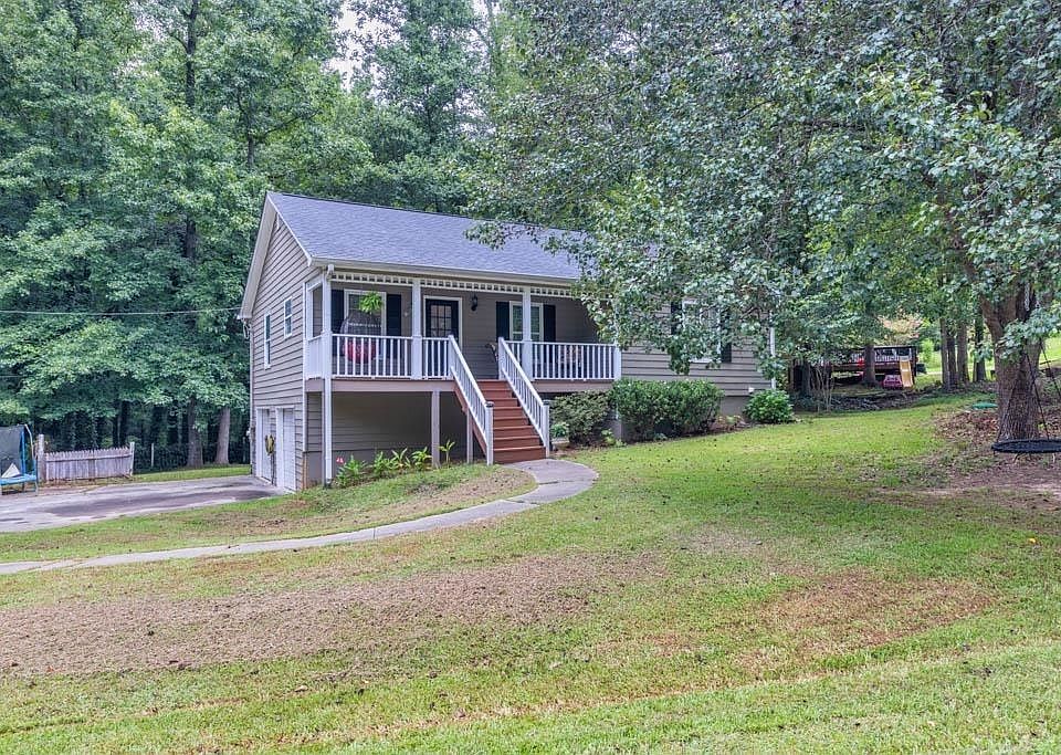 Congratulations you found it! This charming 3 bedroom, 2 bath home situated on more than a half acre is an absolute must see! No HOA or rental restrictions, great investment property or long term option for home owner. This wonderful home offers stainless steel appliances, gas range, microwave, hardwood floors and a spacious partially finished basement. Relax on the covered front porch or large oversized deck overlooking your private, shaded fenced backyard. Recently painted interior, cute tiled secondary bath, you won't be disappointed! Convenient and quiet location easy access to 85, 985, and minutes to lake lanier, great restaurants, and shopping. Come see and prepare to fall in love!