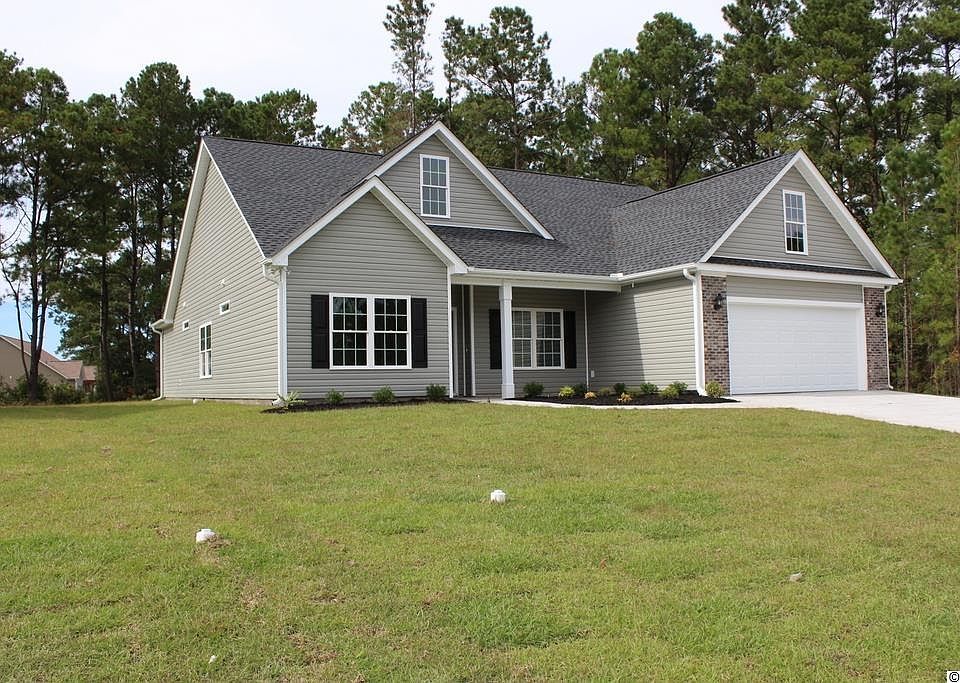 Woodland Valley (at Diamondback Golf Course) on Hwy 9, close to Hwy 701. Within 20 minutes of N. Myrtle Beach, the ocean, shopping, and dining. Beautiful established community offering lake and golf course views. This Sundial incorporates an outstanding list of features in a very competitively priced new home. Features include entry foyer, arched doorways into the formal dining room and a front bedroom with a full bath and closet off the hall. The living room has a vaulted ceiling with ceiling fan and is open to the kitchen. Kitchen has stainless steel appliances, upgraded white beadboard wood cabinets with crown molding, granite countertops and a pantry. Easy access to the extended screened porch and extended patio. The screened porch and patio each have a 120 outlet. Private master bedroom suite has a double tray ceiling, ceiling fan, a bay window, and a double walk-in closet. The master bath features a soaking tub, raised height double bowl vanity and a comfort height commode. The guest bathroom also has a comfort height commode. The guest bedrooms and bathroom are on the opposite side of the home. Upgraded waterproof luxury vinyl plank flooring in all the common living areas and master bedroom, waterproof vinyl in the bathrooms and laundry room and carpet in the guest bedrooms. Blinds package included for the windows and sliding door. Spacious finished/painted 2-car garage, with automatic door opener, mop sink, and pull down stairs to attic storage above. Irrigation system, gutters, sodded and landscaped yard. Award winning local builder. Video is for illustrative purposes only and may be of a similar home built elsewhere. Square footage is approximate and not guaranteed. Buyer is responsible for verification.