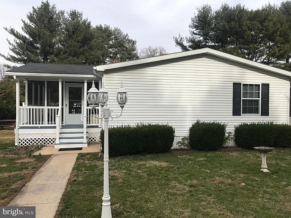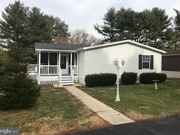 Nearly new double wide manufactured home in 55+ community in Darlington. Convenient to US 1 and minutes from Bel Air and Havre de Grace. New carpet throughout and fresh paint make this home truly move in ready. Low lot lease fee of only $450 per month includes shared well and septic systems as well as snow removal. Large composite material deck, fully roofed and screened and private end of row setting make this house feel like a rural get away with all of the comforts of home. Make application with the park manager following purchase contract agreement.