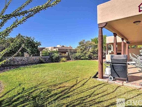 Former LC HOMEBUILDERS SHOWCASE home...Exciting Southwestern design elements! You'll appreciate the unique ceiling treatment, extensive tile, wood doors-pillars-corbels-beams, custom nichos and numerous skylights! You're greeted with a private entry courtyard. GREAT ROOM features a gorgeous stack-stone fireplace, raised sculpted ceiling with herringbone wood accents. KITCHEN offers granite counters, stainless appliances, breakfast bar, custom wood cabinetry, Bosch DW, pantry and breakfast nook. FORMAL DINING area plus a BONUS OFFICE with tile flooring and corner kiva fireplace. MASTER BEDROOM suite has full bath with double sinks, jet tube with tile surround & glass block, separate shower and walk in closet. Lush backyard with L-shaped covered patio-private area with its own fireplace...ready for outdoor entertaining! Views of Organ Mountains. Great Sonoma Ranch location close to parks, restaurants, golf courses and commercial services!