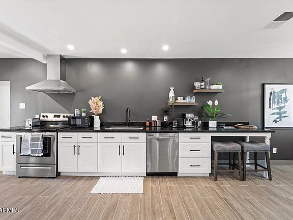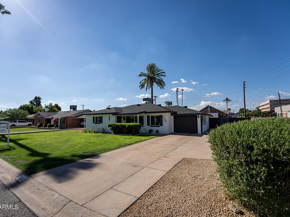 Motivated Seller! This updated Arcadia home on a corner lot is near shopping, restaurants & Sky Harbor. A large master bedroom has ensuite and access to beautiful backyard. Two more bedrooms with barn doors, plus office and full bath, round out this family home. The living area opens to dining and beautifully updated kitchen. White shaker cabinets, dark Granite countertops with floating shelves, present a modern classy look. The kitchen gives access to covered patio space with seating area and wall fireplace. An adjoining large patio and newly designed backyard ensure great entertaining throughout. This sought after area offers City irrigation, to support large shade trees, unique in the area. Seldom does a large corner property, in a quiet neighborhood on the edge of all that Arcadia!