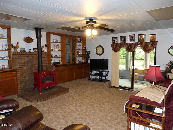 Charming brick ranch home! Main level features 3 bedroom 1 1/2 bath, formal dining room with open concept to the kitchen. Large family room with propane stove 20 x 11 patio on back of home and a 16 x 8 three season room on the front of home. Ceiling fans, hardowwd floors and appliances. Lowere level is a full finished basement with a large bedroom, family room, laundry room and wood burning stove. Outdoors offers an inground pool with a pool house and slide. A 24 x 54 pole barn with a cement floor. 2 tax codes with this property.