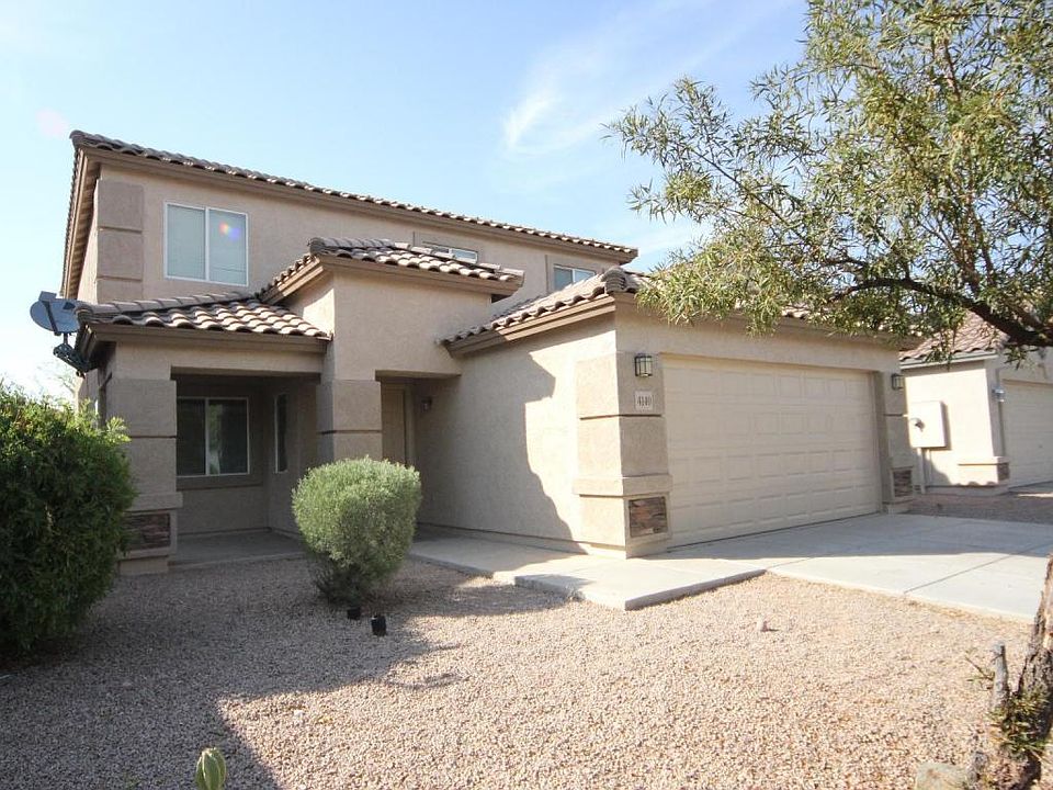 3 BR Home with Loft in Beautiful Copper Basin.Over 2000 sq ft with 3 Bedrooms, 2.5 Bath, Formal Living room, Great Room, Open Eat-In Kitchen, Huge Loft. All bedrooms are upstairs with large loft. Master has walk-in closet and full bath. Bedrooms have mirrored closets. Half-bath downstairs. Large backyard has extended patio and low maintenance desert landscaping. South-facing front porch. Community pool.