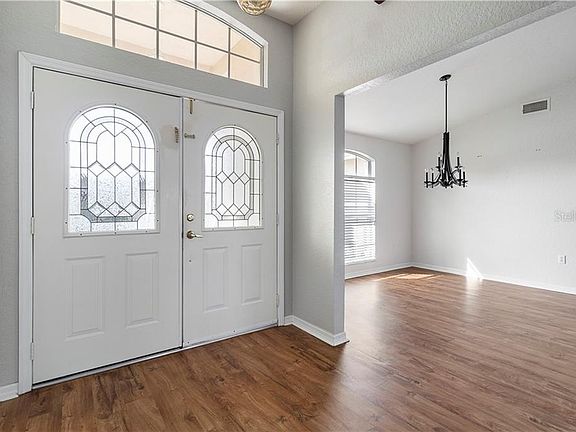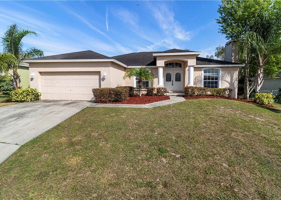 This home features a three bedroom two bath split plan layout with laminate wood flooring throughout the house. The den\office has a fireplace and the master bath has all the amenities including a double vanity and a garden tub! fenced in back yard, screened lani and more!
