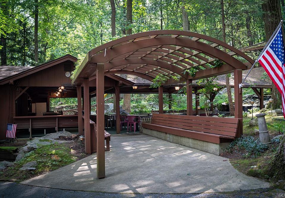 Unique and amazing are words to describe this property!Entertaining and outdoor games- you will find them here. Beginning with the covered game area (63X27) which includes a bocci court and more, go to the full size basketball courts, kids' playground and a party pavilion which is fully functional with full kitchen, separate serving area, full bar, covered eating area with ceiling fans and waterfall.Add to this an extended garage with one roll up bay,huge workshop,office area,storage area, half bath and its own plumbing and electricity. This area could easily be converted to living space. Also on the property is a cozy 3 bedroom, 2 1/2 bath home with a covered entrance with slate flooring. Relax in the comfy family room with wood fireplace and lots of windows to look out over the property. Spacious kitchen, large eating area, and a bedroom are downstairs. 2 more bedrooms upstairs. Basement has offices,laundry and more. All this on 11 wooded acres. A property you need to experience! 2020-07-08